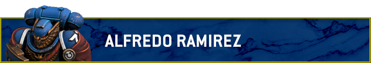 Credit: Alfredo RamirezWith these models being so similar, I chose to use a little bit of heraldry to differentiate them in my head and give them some backstory. Brother Argentus is recently promoted to the Victrix Guard after the death of one of his predecessors and you can identify by his Vigilus Campaign Badge (peeking out behind the shield on his right greave). Brother Auralius on the other hand is a 2nd-generation Primaris that underwent the Calgarian Rites and has served the chapter for well over a century. His left greave is decorated with a much older Campaign Badge, commemorating his valor in a joint action with the Crimson Fists a long ways away from Vigilus.