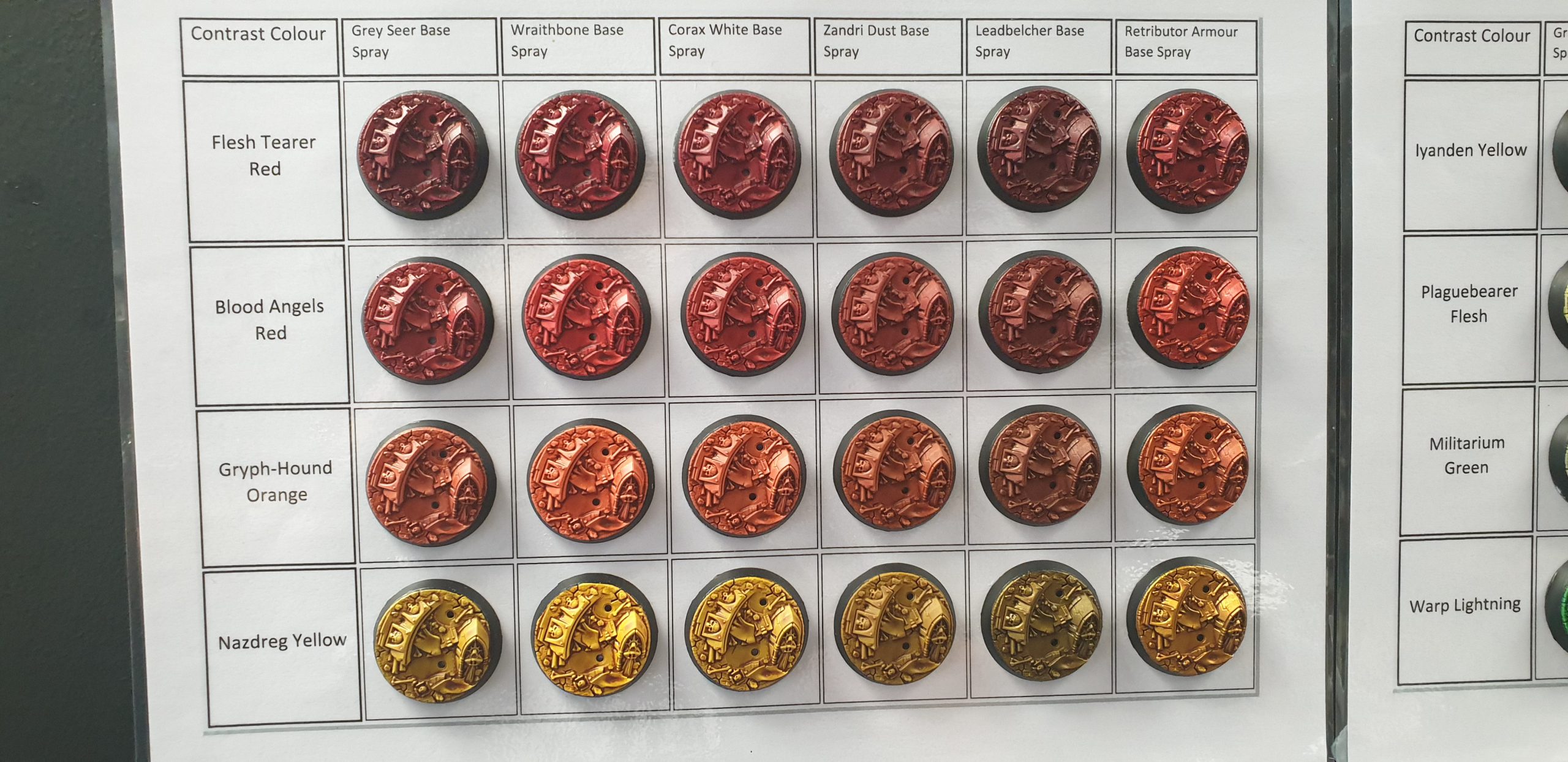 Contrast over different undercoats - Games Workshop ChelmsfordThis is a familiar image of different contrast paints over different undercoats and the changes in colour value created by them. The overpainting is exactly the same, but the underpaint is different and so the effect is different. As a miniature painter you will have done something like this, and underpainting is at it's most basic level this with more thought applied.