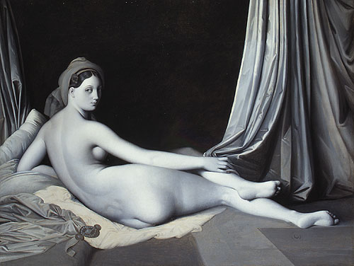 Odalisque-in-Grisaille-1824–34-by-Jean-Auguste-Dominique-IngresThe above painting is commonly used to show the colour value that can be created using a single hue, with the drapes to the right of the painting having been overpainted to show the changes to colour value caused by the underpainting.