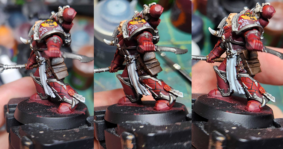 For all the Word Bearers' red armour, use the same method I used in the previous section, then carry on below as the colour scheme assumes a red undercoat from this point.