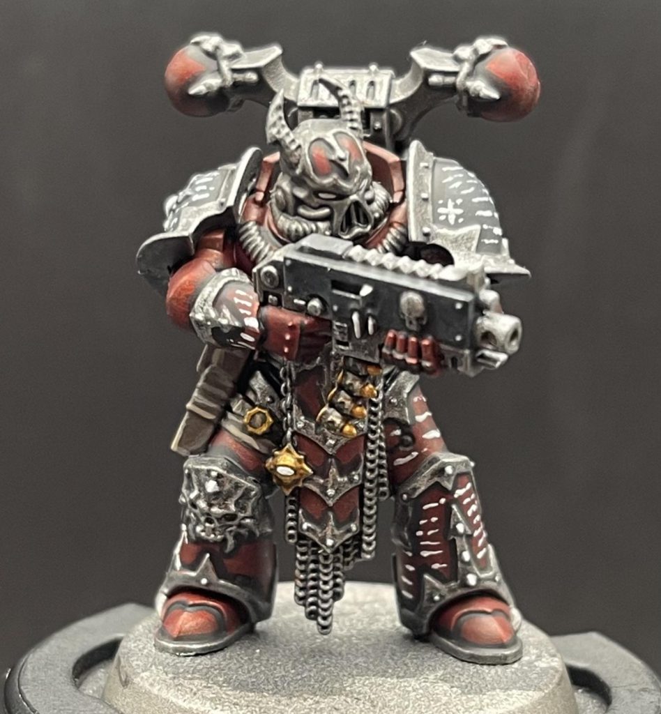 Do you want to play the coolest army in 40K, but hate the idea of painting trim? Do you like the idea of metallic armor, but don’t want to mess with Tamiya Clear? Do you like scribbling on your models to simulate the words of their profane religion? Have I got a recipe for you.