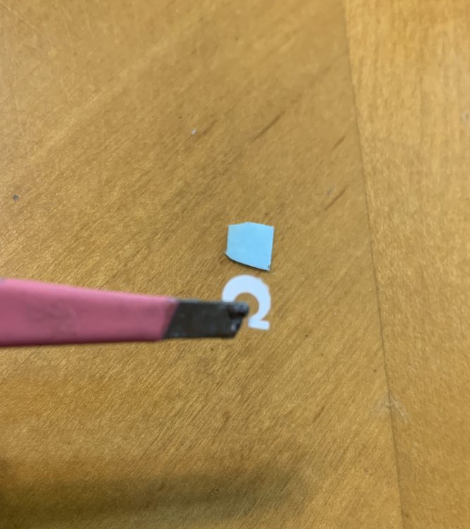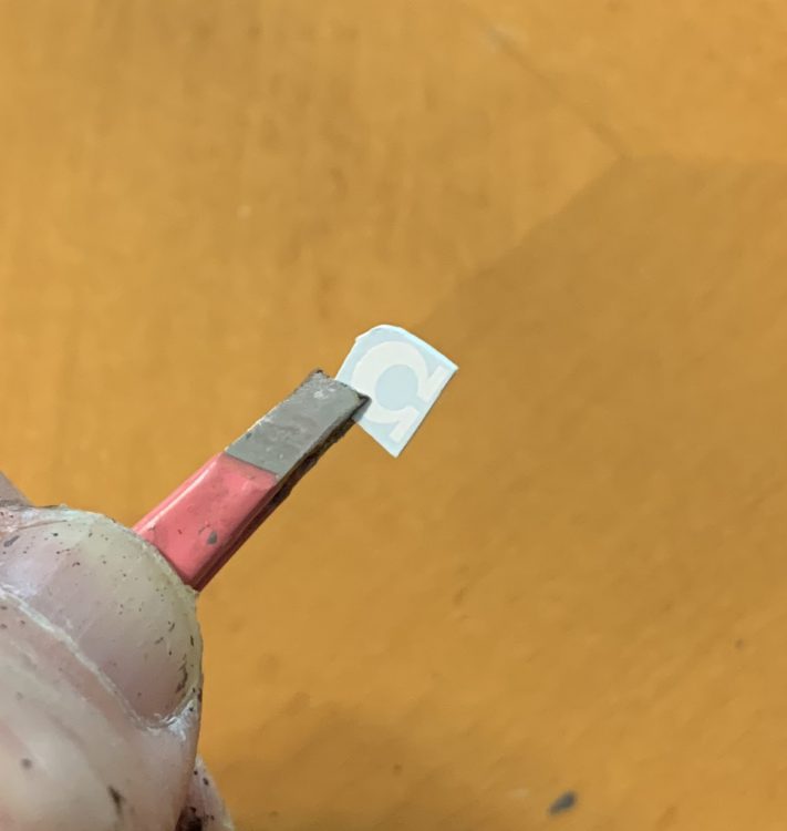 Transfer has been removed from the backing paper.Give it a minute or two to dry and then pat over it with a damp piece of paper towel to work out any wrinkles. That’s not usually much of a problem except for on larger decals, but keep an eye on it in case it starts to wrinkle up. If there are wrinkles, wait for it to dry completely and apply another coat of Micro-Set. Continue doing this until all wrinkles disappear and the transfer is exactly where you want it. If there are wrinkles or bubbles that are still being stubborn, poke them with a needle or the very, very tip of your sharpest modeling knife and apply more Micro-Set.