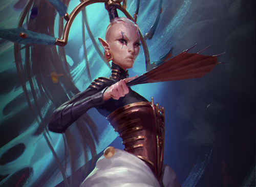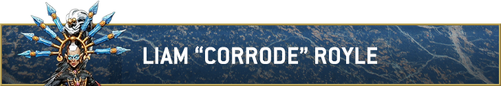 Credit: James "Boon" KellingIn general, I try to keep the factions I paint tied together visually with some form of unifying color, even if it’s just an accent – in the case of my Ynnari it’s the use of red as a primary color for armor plating or on sashes/capes/etc. The Visarch, as is appropriate, sports his red armor. I wanted to give Yvraine more of a traditional Romani look, so I opted to retain the red on her few armored portions but instead go with cool blues and purples on her robes. I wasn’t sure if the colors would end up clashing, but I think it came out perfectly.