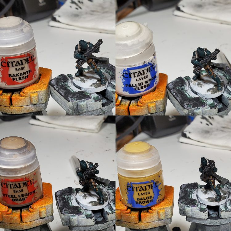 This was my first time attempting eyes and really putting more effort in to faces in general, so I had some mixed results with some slightly surprised looking models and overly harsh highlights. For the flesh I did my best to follow the guide for East Asian skin ZIVth provided in our HTPE: Human Skin guide. Working from a Basic Skintone up through to Ivory at the very highest points with an intermediate wash of Seraphim Sepia and Reikland Fleshshade. And this was where I left the models for a while but I couldn't help feeling like they needs a little more punch.