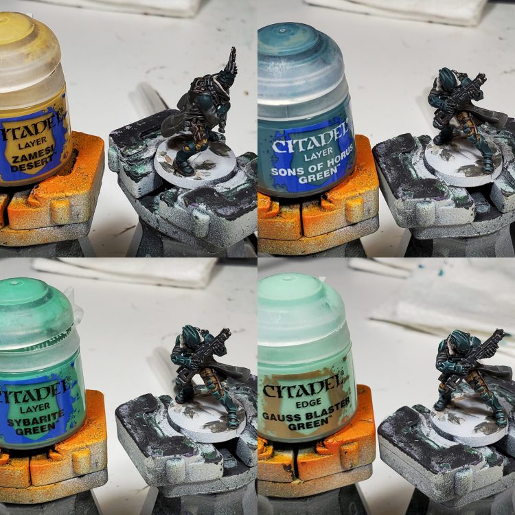 While I usually don't do this on my usual 40K models as it can be a bit too subtle, I reused the base coat colour to provide a slower transition into the highlights.