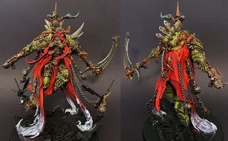 Motarion is the largest and most complicated model in the Death Guard range, a daemon primarch incorporating a mix of mechanical and organic elements, cloth, wings, and slimy buboes into a wonderful centerpiece for the army.