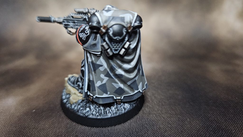 I wanted a more earthy, clay-colored red for techmarines, so I kept the undercoat of Khorne Red as the basecoat.Camo Cloaks (outside)
