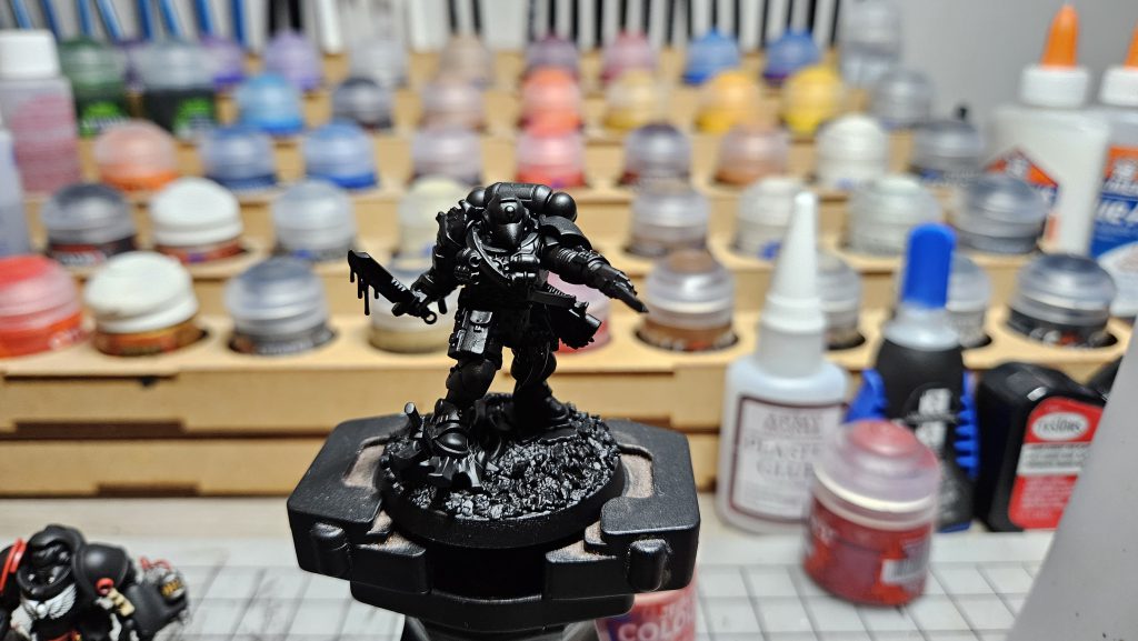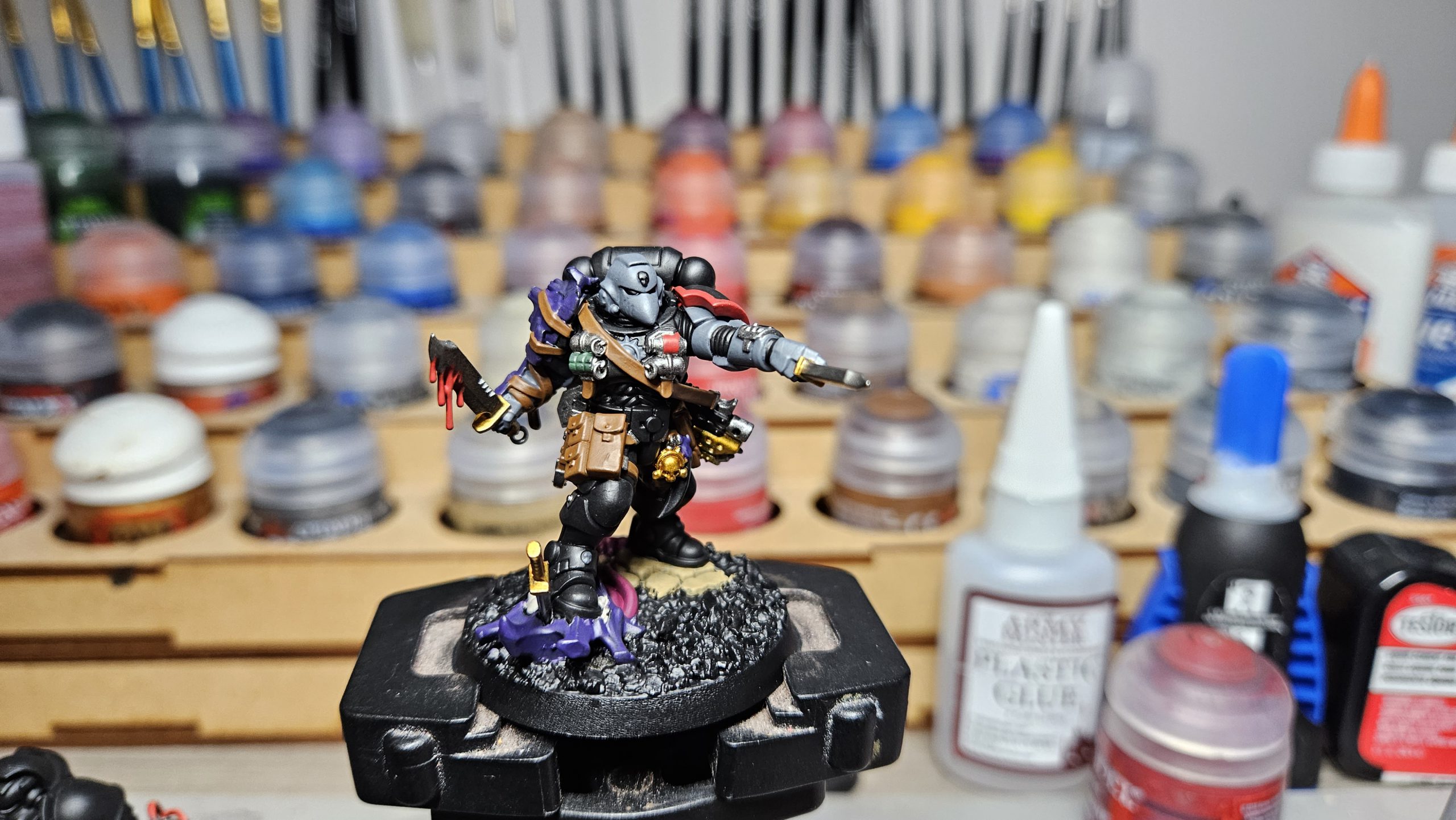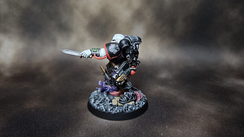 Oh, gribblies. I like the cool purple that contrasts with the rest of the mostly-warm colors on the rest of the mini.There you have it! I hope this inspires y’all to paint some Raven Guard. I look forward to seeing and hearing how people have improved on my techniques! Keep painting out there!