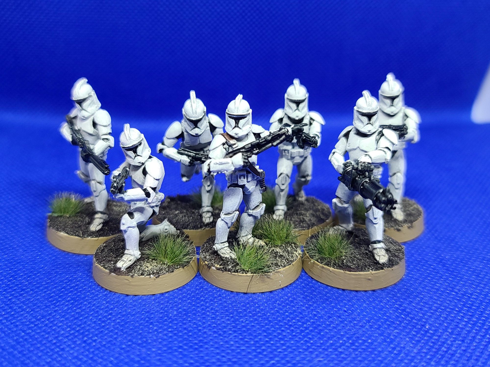 You can easily end it there, but the draw the Clones have over Stormtroopers is that every legion is distinct and the various clones can be painted to stand out from one another. For some of my Clones I like to differentiate my squads with by painting areas of their helmets and shoulder pad. For colors you can go with some of your favorite colors though id you want to go with certain Legions I can point you to certain colors. 501st; Calgar Blue is just a perfect fit. 212th; Averland Sunset mixed with a dot of Fire Dragon Bright for a nice orange-yellow. Coruscant Guard; Word Bearers red is a good dark red. Regardless of the color you’re painting your squad or army definitely make sure you mix a bit of medium for a smoother consistency.
