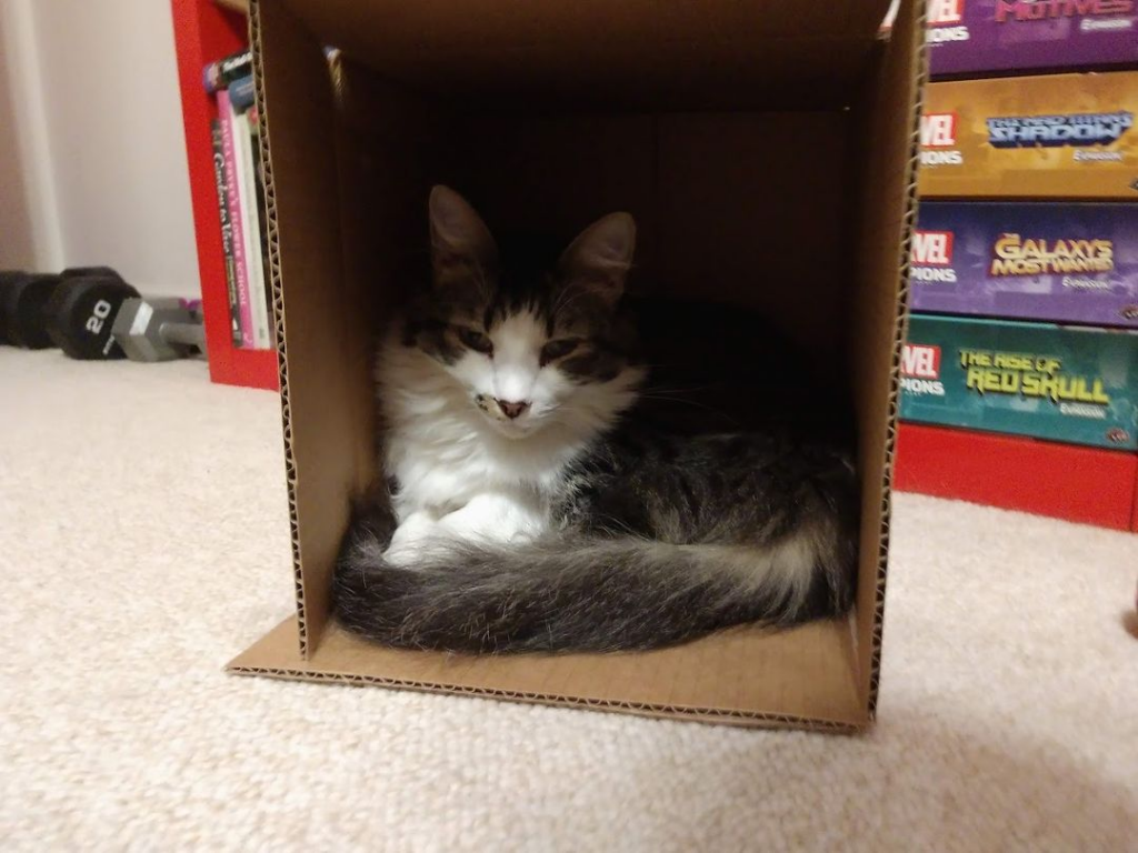 Benji has claimed this box. Trespassers will be scratched.