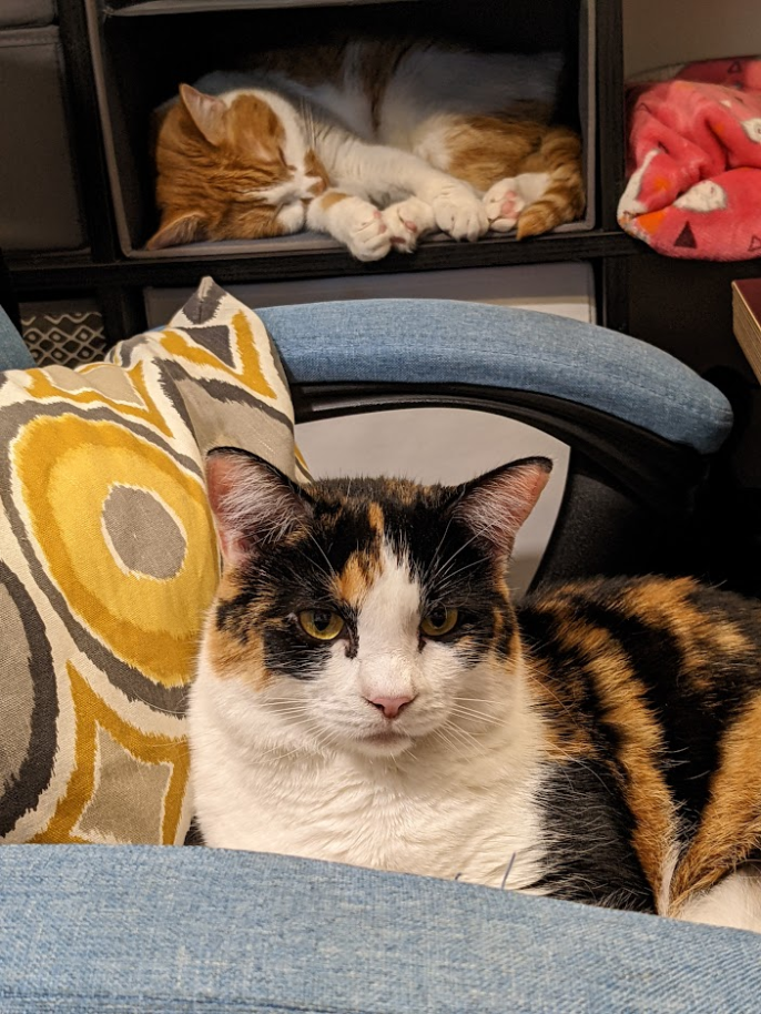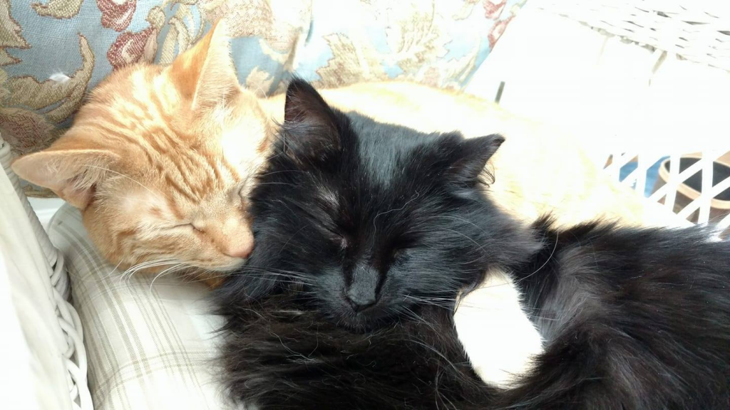 The Lahsbee household possesses numerous cats, two of which are snuggling above.