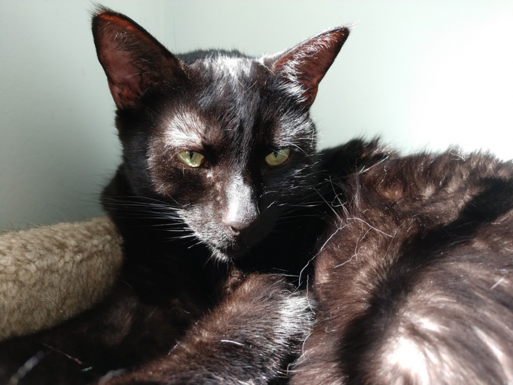 Nigel enjoys soaking up sunlight. Cats ordinarily love to keep warm.