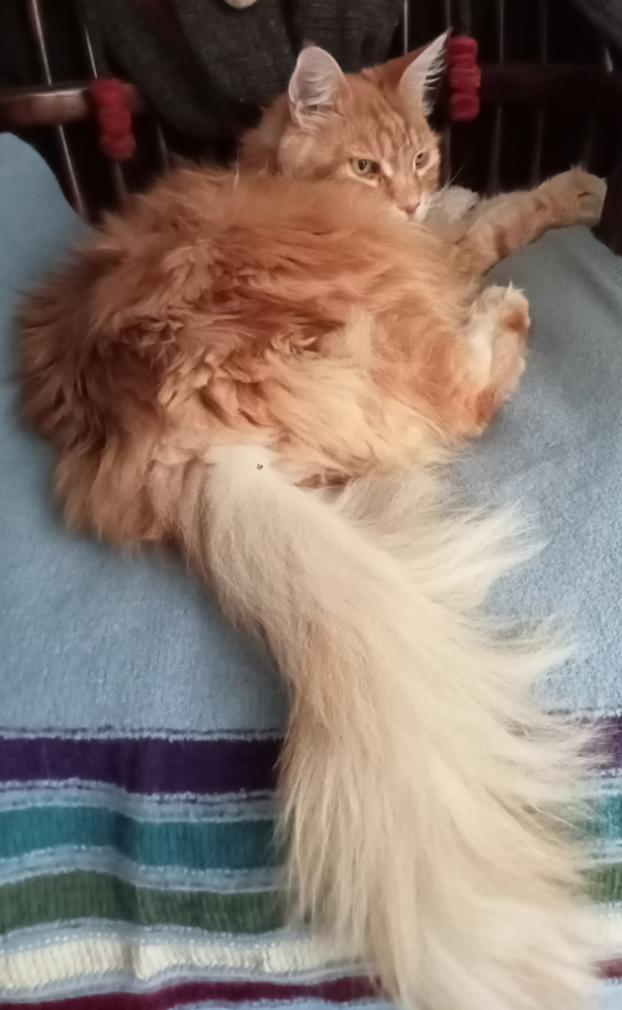 I was told that Dylan is a regular-sized cat, but quite furry. I have yet to verify this and I am skeptical.