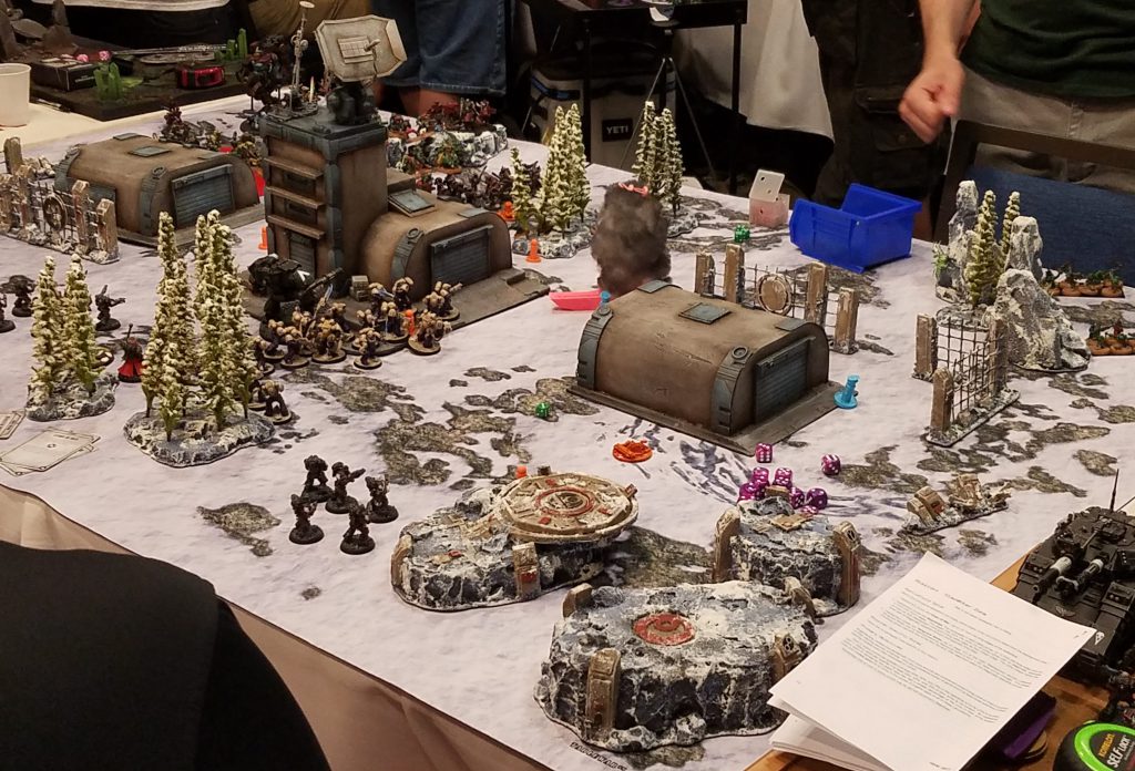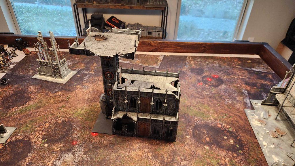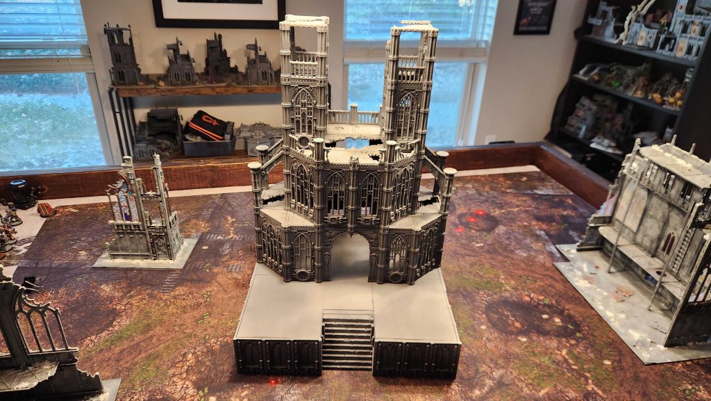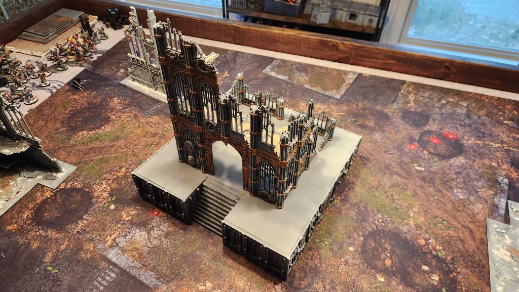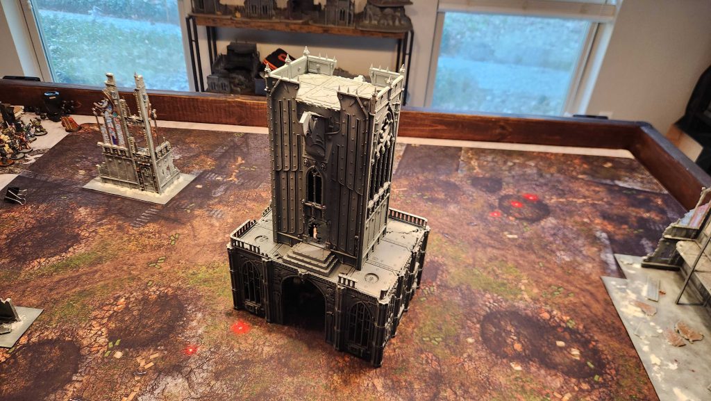 You don't have to spend a shitload of time and money building a superstructure to have a good large centerpiece, though - you can build one using more mundane. modular pieces. I get a ton of value out of those 12"x12" Necromunda tiles, and they're just large enough to use for building centerpieces.