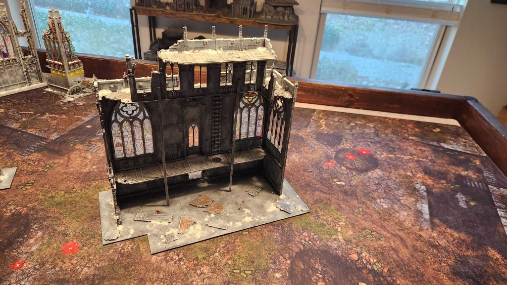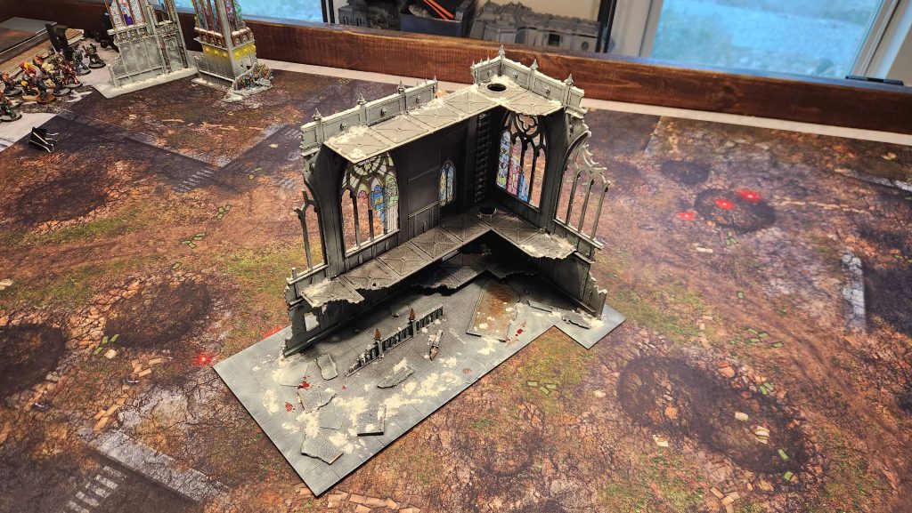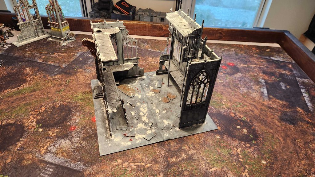 When you take the two and put them together, you get this massive centerpiece ruin, which measures 16"x16" and eats up a large portion of the table as a result: