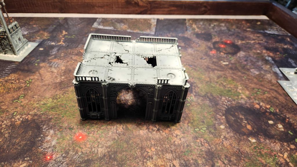 - Credibly block line of sight. You want to funnel players to the big centerpiece to fight, not shoot through it or past it. It should credibly block line of sight with some high walls and be oriented on the battlefield to do that.