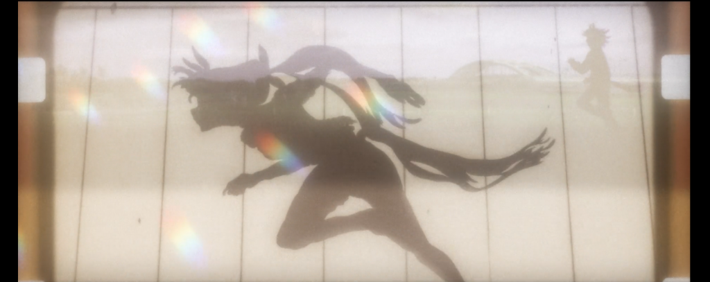 The "first piece of cinema", Horse in Motion.The birth of film as a medium is often attributed to the chronophotography "The Horse in Motion" by Eadweard Muybridge, and so it may not surprise you, dear reader, to discover that Umamusume's theatrical debut, "Beginning of a New Era", begins by depicting its own version of that historical moment over a narrative explanation of the world and universe, moving from the sepia tones of the past into a RGBY transition to the "present" of modern racing. "Beginning of a New Era" is, in this writer's subjective opinion, an absolutely gorgeous film that is deeply invested in the concepts of competition, legacy, chasing dreams, losing hope, and overcoming one's own fears; it is also perhaps the best single example of how the franchise excels at taking history and using it to tell compelling stories that are almost universally understood. Beginning of a New Era is a movie that is as much about a love of horse racing and sports history as it is a movie about cinema and film-making, blending various animation styles, lighting techniques, color filters, camera tricks, and much more into a movie that is, ostensibly, "about horse girls running in circles".