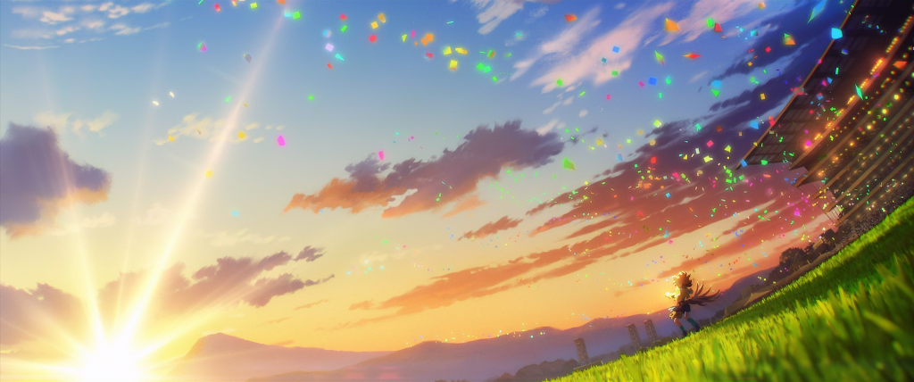 This scene in Beginning of a New Era is everything I love in the film. The energy, composition, use of color and light and scale, this movie absolutely rocks. If you love movies, you should see it for that alone. Double if you like sports films.Although the film was never made officially available outside of Japan in English, I urge people to watch it, and I've taken to showing it to curious friends as just an example of a well-made film made by people who love their medium and their subject. And in many cases, that's the real "magic" of Umamusume: a love of the sport and it's history ensures that excitement and passion is often passed on to the viewers.