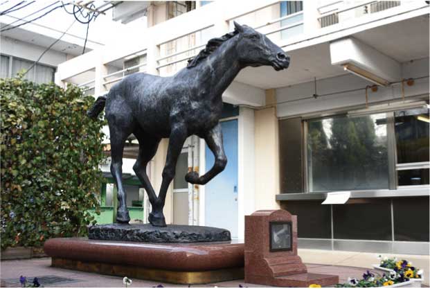 The Kasamatsu Race Track, where the Cinderella Gray story begins. The site has become a popular tourist attraction now, reigniting the craze that swept this small town in the 80s.While Cinderella Gray follows Oguri Cap's story from an unknown and nearly undiscovered country horse to a horse racing legend, the realities of his Cinderella Story are often more bizarre than the illustrated versions are able to recreate. Perhaps one of the greatest examples is that of the 1989 Japan Cup, in which Oguri Cap, along with all 13 other horses, all broke the Japanese record for fastest finish in the Japan Cup. Not just one, or two, or even three: every single horse in the race broke record, and not just one, but multiple: the first was breaking the 2000m record held at 1:58.3 to 1:58.0, and then every distance record after that until ending the race at 2:22.2, a record held for an entire decade after this race. The inter-horse relationships were also unique and bizarre; Ibn Bey, who began the mad dash pace of the race after reportedly being scared by the 100k people in attendance, seemed to rile up the American horse Hawkster, and the two fought for dominance for almost the entire race until Pay the Butler, Oguri Cap, and a New Zealand horse named Horlicks broke through for the final stretch. It was Horlicks and Oguri Cap's neck and neck finish that caught the crowd, and racing history, as a timeless moment of horse racing legend. The two of them battled with a ferocious intensity in the final stretch, with the potential of two national legacies at stake; for Oguri Cap, it would have been to be the first Japanese winner of the Japan Cup since Symboli Rudolf, and for Horlicks, her victory would become the savior of New Zealand's dwindling horse racing hopes. The 1989 Japan cup also had one other famous, lingering theory as to why Oguri Cap, a horse who reportedly cared about very little but eating and running, wanted to keep up with Horlicks so much: he supposedly had a crush on her. No matter how many "Oguri Gals" existed, Oguri Cap only had eyes for one horse, apparently.