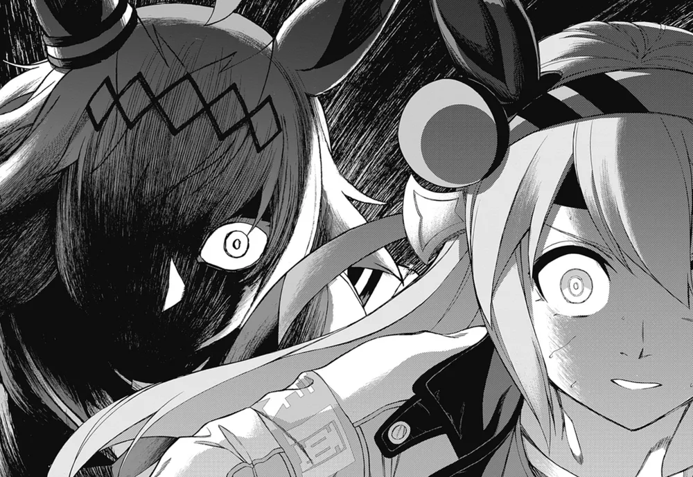 Manifesting the pressure and aura of your opponent breathing down your neck to take the win from you as an horrific monster is great work, and for the record, Oguri (the monster) is the *hero* here.Recently, that's been the case in the Umamusume series Umamusume: Cinderella Gray, a manga and now anime series (which you can watch in most English regions currently!) that follows Oguri Cap, the horse often attributed with giving birth to a new age of horse racing popularity and investment. Oguri Cap's career was not just legendary, it was unprecedented, with the horse giving rise to things that Japanese Horse Racing still has him to thank for nearly 40 years later, and who Umamusume may not have even existed without; even the concept of "idol horses", which Umamusume spoofs by having the horse girls be actual singing idols after winning races, is attributed to the real life Oguri Cap, who created armies of fans (many of which were women), who demanded merchandise to celebrate their favorite horse. Today, the JRA's most popular pieces of merchandise are "Idol Horse" plushes, of which Oguri Cap still sells out.