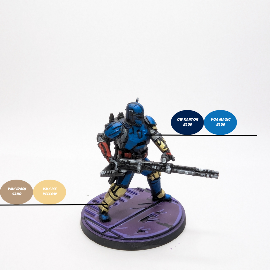 - I wanted to make sure I made the blue armor on this model stand out from the rest of the models in this box, so I began with a basecoat of GW Kantor Blue and then highlighted it with one of my absolute favorite blues, Vallejo Game Air Magic Blue.