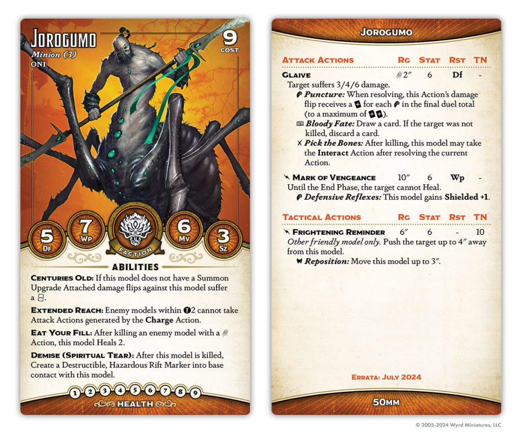 along came a drider, and sat down beside her... Credit: Wyrd GamesPublic Enemy Number One, the Jorogumo is probably the biggest reason Oni needed to be changed. These things beat ass at a twelfth-grade level, and are still summonable (in fact it's even easier); so what has changed?