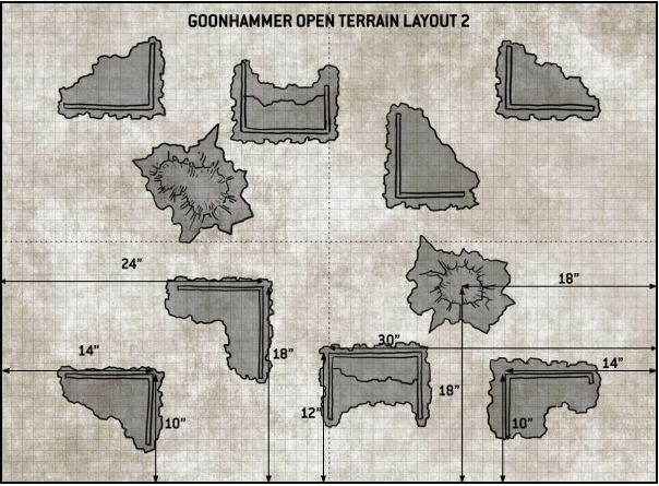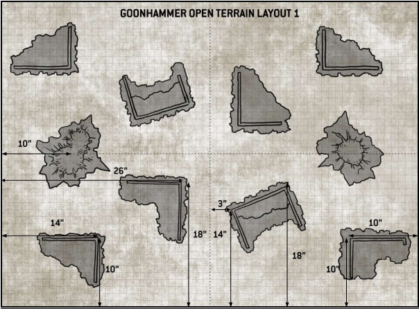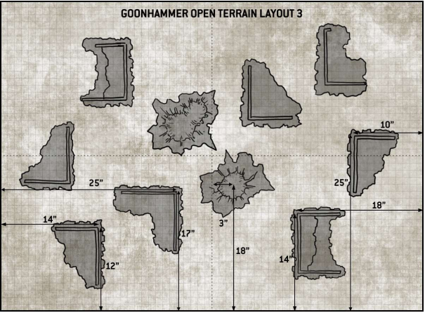 Goonhammer Open Layout 2This game was very cagey. As you may be able to work out from the terrain map and objective's positions, both myself and David were able to sit on three objectives without exposing ourselves. Neither of us wanted to move out into the midfield given the other would destroy the exposed units, and so we both held most of our armies back for the majority of the game.