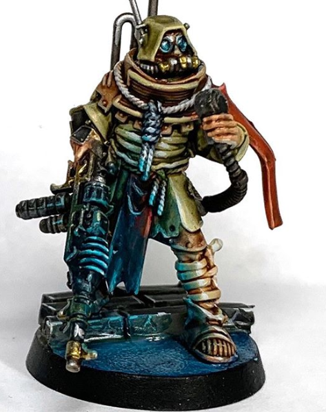 The key ability here is Inconceivable Customisation. At the start of your shooting phase you pick an ORDO unit within 3", and roll a D3. One third of the time they re-roll hits, one third of the time they re-roll wounds, and one third of the time re-roll both.
