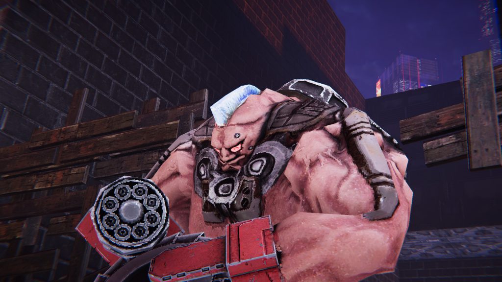 Josh: Turbo Overkill is a resplendent, high-octane, in-your-face, chainsaw-em-up boomer shooter that is everything right with modern interpretations of retro-shooters. It’s dripping with pure, 80’s style cyberpunk style with a universe that takes itself seriously enough to invest yourself into the story and its characters but is oozing with satirical nonsense.You are Johnny fuckin’ Turbo, the baddest of the bad, the meanest ass-kicker to ever kick-ass, and you’re here to wrangle a corpo experiement gone wrong. Armed with nothing but your trusty magnum and chainsaw leg (to begin with) you’re out to slaughter an artificial God before it consumes everything and everyone.