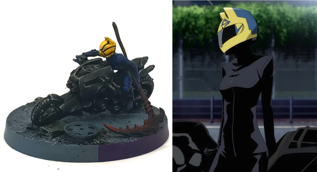 Kuroshi Rider on the left, Celty from Durarara on the right (Durarara, 2002-2014)When it comes to Lieutenant options, as an NA2 faction, JSA just about blows my tiny mind all over the rear window of a 1974 Chevy Nova…