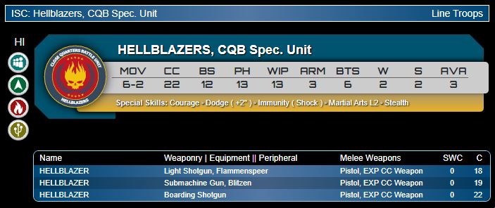 Musterkrux: What do Hellblazers do? They blaze hell. These are fantastic profiles even if the memes about them being Space Marines is a little too close to the truth for my liking. Honestly, who brings a Sword and Board to a Science-fiction Gunfight? Hellblazers, apparently.Genghis Cohen: Well well well, more sub-20-point Impetuous HI which will always be in Fireteams. This is a very competitive unit archetype, and here, unlike with Military Orders’ Teutonic Knights, they can compose pure Fireteams with conventional, long-range weapon HI to make a full Core. No, I'm not salty, why do you ask? Honestly this is another highly effective variant of a unit that has been tried and tested. I expect a LOT of future Torchlight lists to use their max AVA of 3 - and if I'm on my soapbox for a moment, I think the designers know that and their AVA is the primary limiting factor on a type of trooper that really bends game balance.