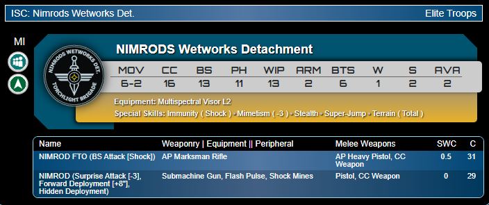 Genghis Cohen: Now you need a Kludger for this, and I'm not sure those profiles wouldn't be better as a late-game support model with Servant bots. I see some mileage in a Nimrod FTO, Kludger, and something cheap like a Ment. Vidocq and Psi-Cops both offer specialist options (and gunfighters, although I think the Nimrod FTO blows those otherwise fine profiles out of the water). None of these guys are that cheap though, and unlike the very impressive Silverstar teams, this is mostly a collection of 1W units. Kludger engineer, Stormbot FTO, and either a Nimrod or a cheap Ment? My instinct is that the real prize here is the Nimrod as a budget, highly effective gunfighter which benefits a lot from the Haris bonus and frees your points to be spent elsewhere. Musterkrux: I agree with Genghis; I don’t hate a Doc-Kludger, a shooter, and a cheap wildcard. However, and I’m going to potentially spicy here: Don’t take a Mobility Haris...just take two Silverstar Fireteams (one Core, one Haris). Boom.Genghis Cohen: yeah, that's where I'm going as well to a certain degree. It's worth noting that a 25pt Psi-Cop MMR can do a lot of what a 31pt Nimrod can. Less mobility, only MSV1, can't be AP+Shock, has to pick one. But can get into a team with your Hellblazers, who I think are a real gem as fireteam filler. I think the real point of Mobility teams - and it's not necessarily competitive, but it does sound fun - is in the name. Kludger, Nimrod, Hippolyta, that's a trio of 6-2 super-jumpers bounding about the place.