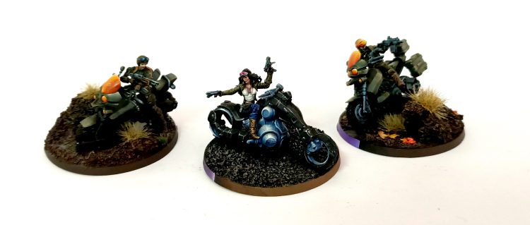 Mavericks and Desperado (Photo credit: Musterkrux)Musterkrux: This is really interesting. Did bikes need a buff? Probably not, but I gather that the argument for changes like these isn’t about balance but rather shaking up the game and keeping things fresh by encouraging new play styles and options for players to explore. If this is the case, please accept my polite golf clap, Koni. Some bikes get more out of this buff than others (ie. anyone who already had Mimetism got low-key stiffed) but at the same time, a Montessa Knight that can take cover is a lot more scary than a Kum biker with Mimetism and Cover. My pick for Most Improved Bike is the USAriadnan Maverick, as it benefits nicely from both Mimetism and Cover, was already well priced and has both attack and specialist options. Then the Dynamo (Dogged) and Montessa (native Arm 4 with 2 wounds) are my next two picks.
