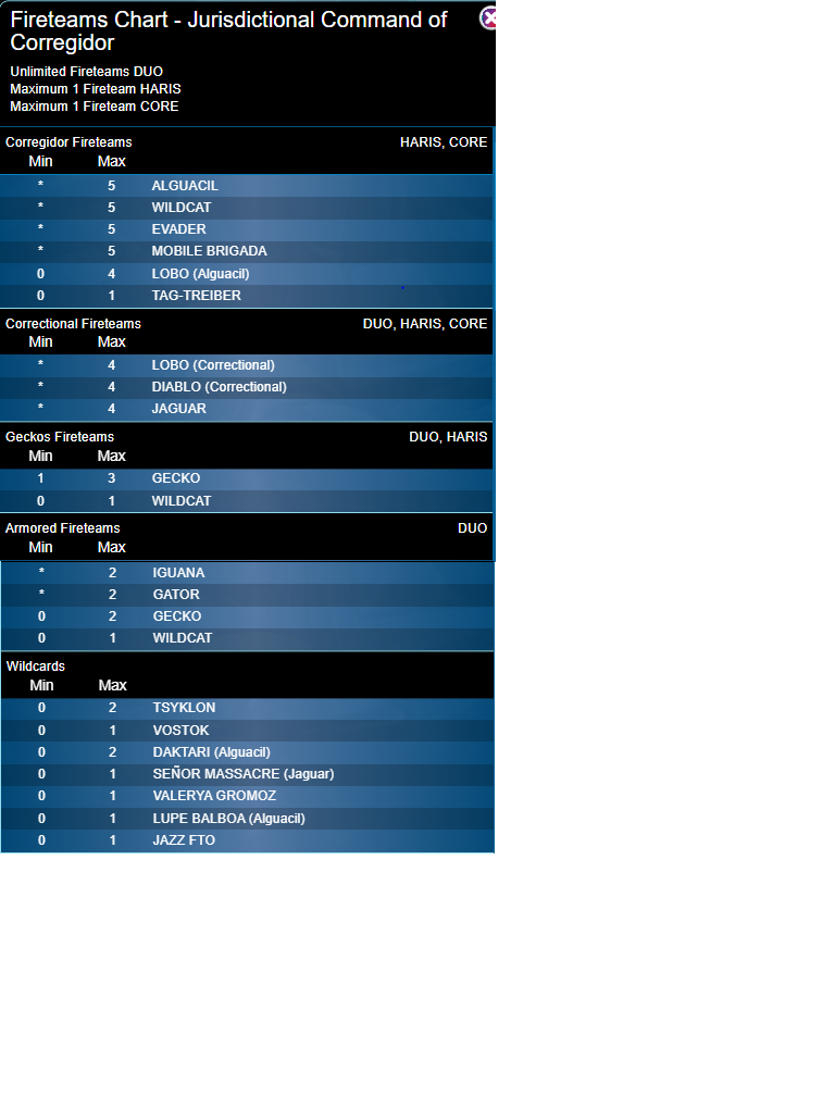 It’s all TAGs and convicts down here. Corregidor cannot Duo any of its HI, or Wildcats. I am fuming about this. BJC can Duo Riot Grrls. TJC can Duo Hollowmen. Hell, generic Nomads can Duo Brigada. Can CJC? Can they ****.Lobos/Diablos are a perfectly fine Duo, you can get the +1SD on a Discoballer and make a Diablo Regular at the same time. So that’s an option if you’re using your Haris and Core slots on something else. A more natural fit is Duos of 2 Jaguars. This makes them more resilient in Reactive and helps smoke go down more reliably. Massacre’s best fit is in such a Duo.