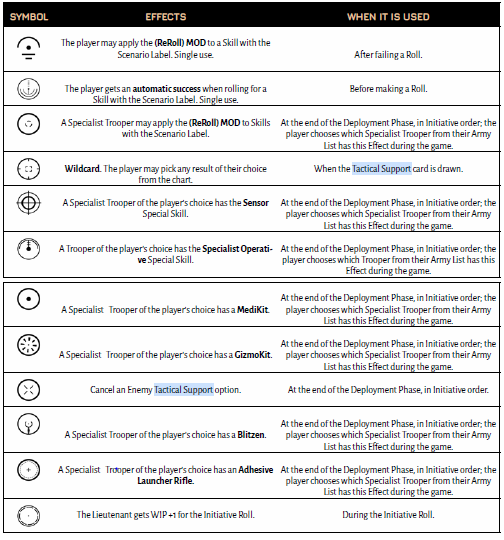 - One Specialist to be able to ReRoll all Scenario Skills during the game (pick which Trooper at the end of Deployment)