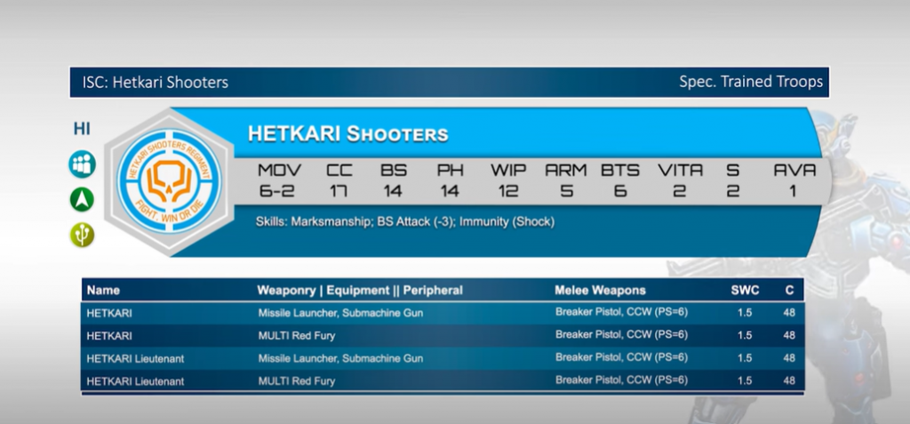 First, in a clarity/quality of life change, CB have decided to rename the Veteran skill to Warhorse, to avoid confusion with the ‘Veteran Troop’ descriptor, which is used for some Classified Objectives. That’s fine and a workable change. CB’s sometimes eccentric naming conventions can be divisive, but we think the name is fine.What’s more interesting for the game is that Warhorse has picked up a powerful, if situational, additional benefit - it allows the bearer to ignore negative modifiers from the BS Attack (-X) skill. That skill was previously very rare, only on Torchlight Brigade’s Silverstar Prime, but it is clearly being handed out to more models in N5 (we have seen the Hetkari Shooters and Longwang TAG with it already, see below) and those will often be apex shooting units. It was previously an unanswerable skill, and now Warhorse gives it some counterplay.
