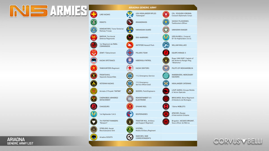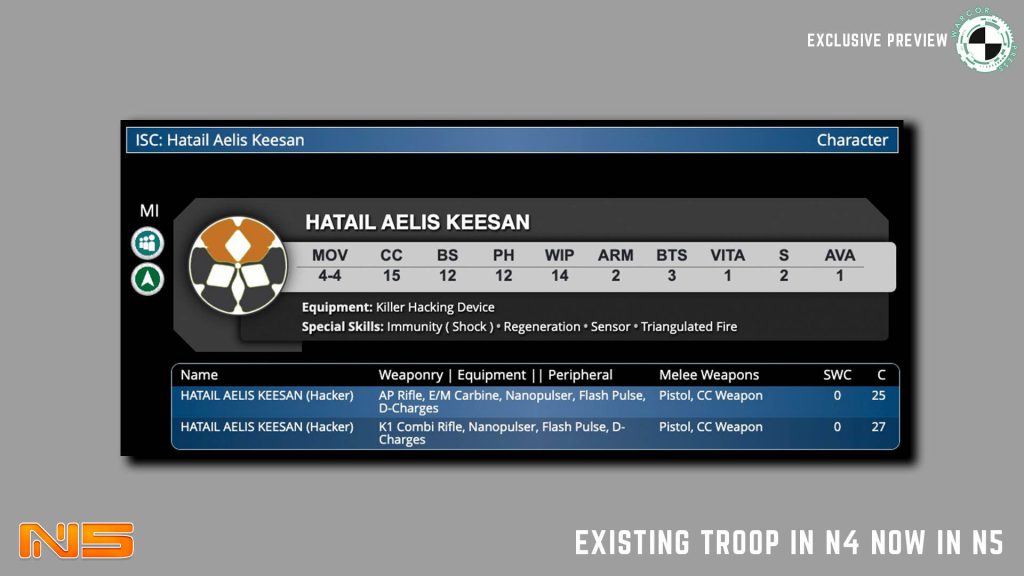 Haqqislam came through cleanly, keeping access to all their characteristic cheap irregular troops, their infiltrators and their gunfighters (54 units in all). They did lose two characters who were iconic for their respective Sectorials and usable in generic (Al-Djabel and Tarik Mansuri), but they kept the biker characters, which were more competitive. Most units removed were rare picks (like the Al Fasid or Hortlak Jannissaries). Haqqislam in N5 has also been cemented as something of a ‘mercenary’ faction; while they lost some mercenary troops that will likely remain part of their Qapu Khalki Sectorial (Kaplans, Druze), they kept Fiddler, Knauf and the Triphammer TAGs (all of which are good capabilities in the context of the faction, especially Knauf). On top of that, they gained access to units not previously available to vanilla Haqqislam in the form of Scarface and Cordelia, and Yuan Yuan drop troops. While Yuan Yuan aren’t especially competitive in N4, some of the early spoilers make it look like the costs of drop troops is decreasing, which might be significant for the game’s cheapest non-netrod combat jump troopers. Haqqislam is also shaping up as something of a vehicle faction, with 4 TAG options, a suite of motorcycles, and two profiles referred to as ‘Aero-Units’ (certainly Haqqislam’s new vehicles), where most factions would only get one. Watch this space.