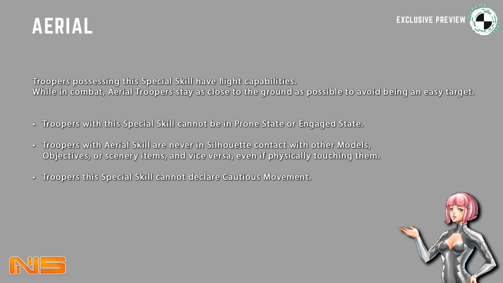 We have seen our first profile of the new unit type - Vehicle (VH) - in O-12’s Firebat (see below). This has the Aerial rule, as will most vehicles we know are being introduced. Indeed, Ariadna is the only faction we know is getting a vehicle which isn’t Aerial.