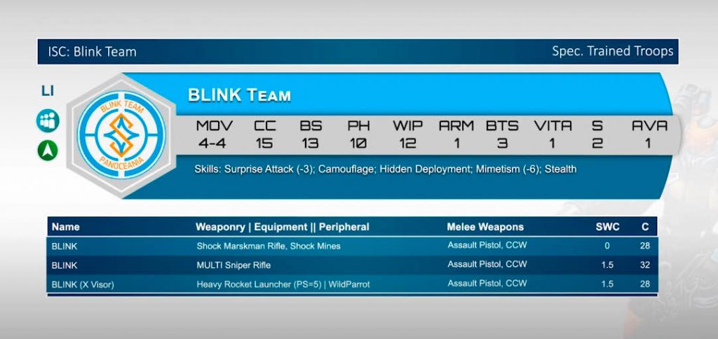 These are a very focussed unit, ambush predators focussed on attacking from hidden deployment with very powerful weapons. That was already quite a valued archetype, particularly for ARO reveals with impact templates, which has usually been the best way going to punish enemies using Fireteams. Blink teams are objectively better than Yu Jing’s Hundun units, which were probably the best known example in N4. They have better Mimetism and assault pistols for an almost imperceptible increase in cost. These will be a real long range threat for Kestrel and PanOceania armies to leverage - even once they are revealed, opponents will need MSV and/or extremely strong shooting units to dig them out of the right position.