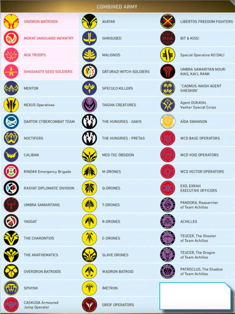 We think the boxed-out two profiles are new units, perhaps Vehicles.Arguably the deepest and broadest roster of any faction in the game (56 units), CA kept pretty much all their N4 good stuff. Morats compose the bulk of the removed units, maybe because they were more likely to be Fireteam-suitable things without a marker state, while the sneakier aliens were more attractive in a vanilla context - few of the removed Morats were common picks in generic CA, although their TAGs will be missed. The really useful Morats: Daturazi, Rasyats, Yaogats, Rindaks and Dartoks all stayed, along with their line infantry. While all the super-elite EI ‘aspects’ (the Avatar, Anathematics and Charontids) remained, which is understandable since they weren’t available in any Sectorials, their poor cousin the Skiavoros has been removed from the game. This is more than made up for by the addition of Team Achilles, five formerly-Aleph characters (who will join Onyx Contact Force as well). Barring unseen profile balance changes, CA have come out of this change apparently unscathed as far as competitive play goes. They kept their command pieces, primary gunfighters, their excellent warbands, their strong and efficient hackers, their array of cheap options and broad range of infiltrators, impersonators, hidden deployment and parachutist (deployment zone). They lost a couple characters who were cool but not competitive picks in generic (Victor Messer, Kornak), but they even kept the Libertos! With the wild card of gaining a suite of new characters, which we don’t know will be good or bad, but are certain to be very extreme units, and CA are looking strong.