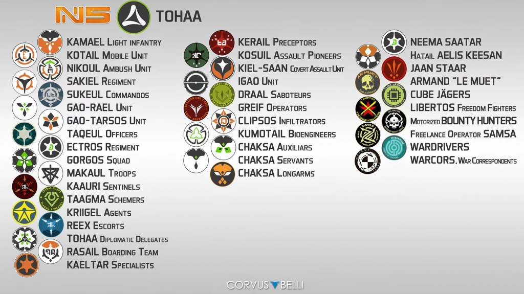 Having miraculously survived the edition change, Tohaa basically made it through without any cuts to their roster, being already rather smaller than other factions (39 units). They lost one Tohaa unit, Kiiutan Imposters, probably on the basis that they were never taken instead of their character version, Jaan Staar, who shared their AVA (and remains available). While they lost some mercenary characters and units (notably beasthunters), they retained most others, including the Libertos and Motorised Bounty Hunters, and even gained access to War Correspondents. It remains to be seen whether they get the unique profiles for regiments like Taagma Schemers and Kriigel Agents that were previously reserved for the vanished Spiral Corps.