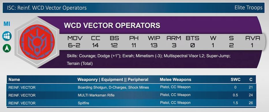 Genghis Cohen: Hmm, I love the Vidocq, and this Reinforcements roster has some nice existing units on it, including another AVA2 Wildcard sensor-bots appearance. I'm not seeing as much jump out at me in the way of big Fireteams as some other factions' lists though. I'd be keen to see how the characters fit into this, and if their reinf profiles change at all.