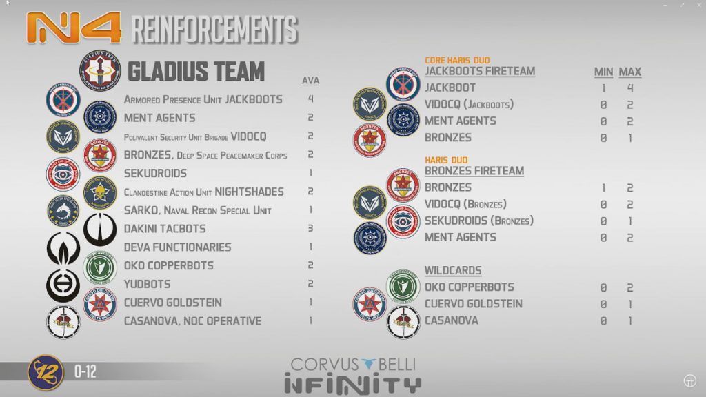 All of the Reinforcement rosters have Core, Haris and Duo Fireteam options. Players can deploy their Reinforcements formed into Fireteams, but must obey their Faction or Sectorial's normal limit on how many Fireteams are on the table. So if a Sectorial deployed a Core Fireteam in their Main Section, and that Fireteam is still intact when the Reinforcements are Requested, they could not deploy those Reinforcements as a second Core Fireteam. It is allowed to cancel the Main Section team, which the owning player can choose to do at any point, and then deploy a Core team as part of the Reinforcements. Players are explicitly forbidden from forming mixed Fireteams of Reinforcement and Main Section troopers, even by spending Command Tokens later in the game. All vanilla Factions have now been granted the right to have one Haris team, but only in Reinforcement games, and their only options to do so are Reinforcement teams.- Genghis Cohen: some real opportunity cost to get Reinforcement Fireteams onto the table for Sectorials. I doubt most Sectorial players will want to give up the defensive benefits of a Core Fireteam in the early game, but they could definitely plan on running without a Haris team, or cancelling a Core or Haris team once the Reinforcements arrive. It really depends on the specific faction. It does look like vanilla Factions are relatively boosted here - I think a Haris team is going to be a more common Reinforcement element than a full Core, and getting it without giving anything up in your Main Section composition is a better deal than Sectorials get. The other winners are Sectorials which can field 2 Haris teams, Steel Phalanx, and of course (ugh) Tohaa.