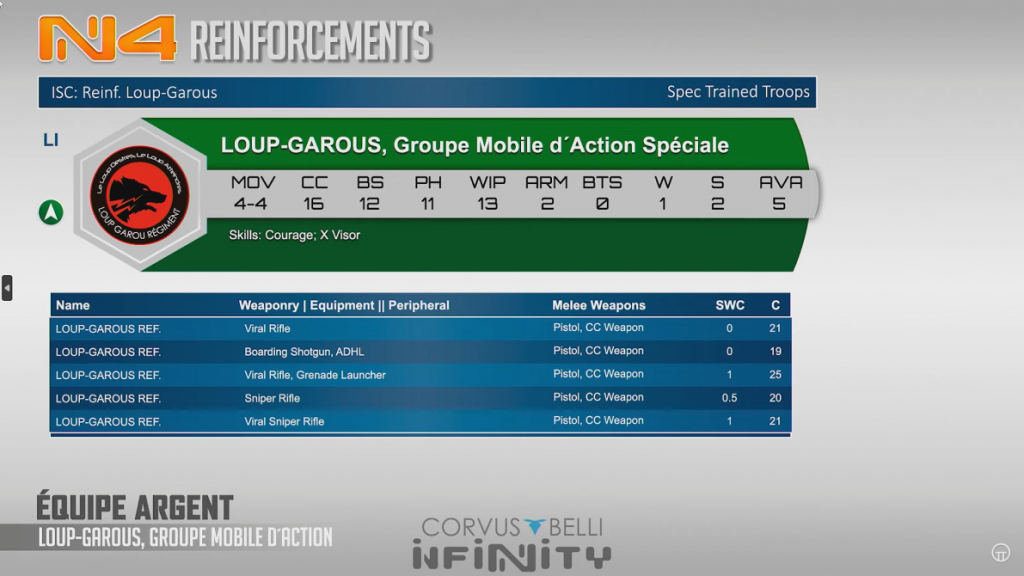 Musterkrux: I'm still pretty down on Loup Garou (with the notable exception of their mad drip Jacket-styles). Being an existing unit nothing has changed for them in the transition to Reinforcements, so both their profile types are very missable.Genghis Cohen: hey now, they got a viral sniper rifle in main section as well. So now you can take a great SWC weapon on a BS12 1W model with no gunfighting mods....oh.
