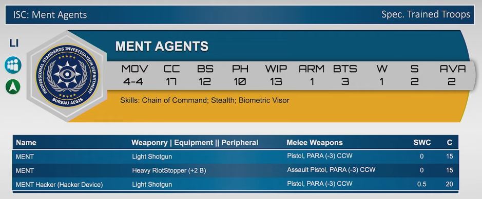 We don't see Ment Agents in Vanilla or Starmada but then again both of those lists have access to Cho, who is a Holomask Chain of Command for 20 points so I feel like their inclusion in a non-reinforcements context would actually be a net loss to O-12 list variety. As it is, they provide you with another means of preventing LoL in O-12 and, for the price, they're a very welcome addition to the roster.Aside, everytime someone says Ment Agent, I assume they're contracting 'Government Agent' down to 'Ment Agent and I'm very OK with that. I assume they jump out of their dropship, flash some badges and yell (over the whine of drophip engines): "I'm an Agent, I work for the 'ment." about three seconds before getting domed by one of the many, many weapons banned by the Concilium.