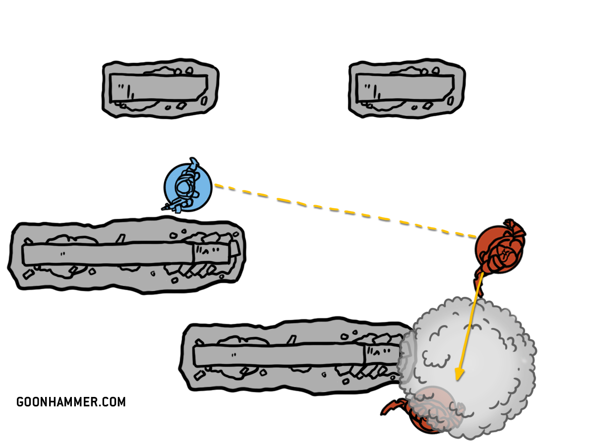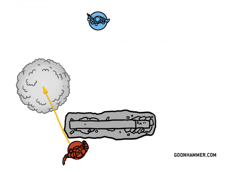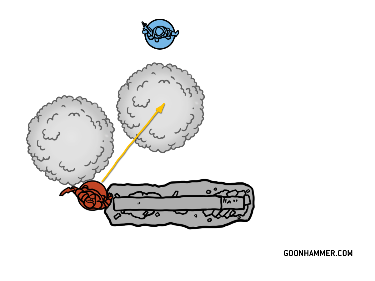 This technique is how you can use smoke to cross large open areas without having to rely on sharp corners. In this technique you lay down multiple smoke grenades leaving very narrow gaps between the templates that you can lob the next grenade through, letting you close with your target without having to come to a dead halt.