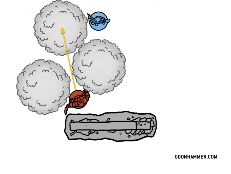 Firstly, the Daturazi throws regular smoke covering Yelvii's view of the two fusiliers. Then, the Rasyat throws Eclipse Smoke to block off the view of the Kamau.