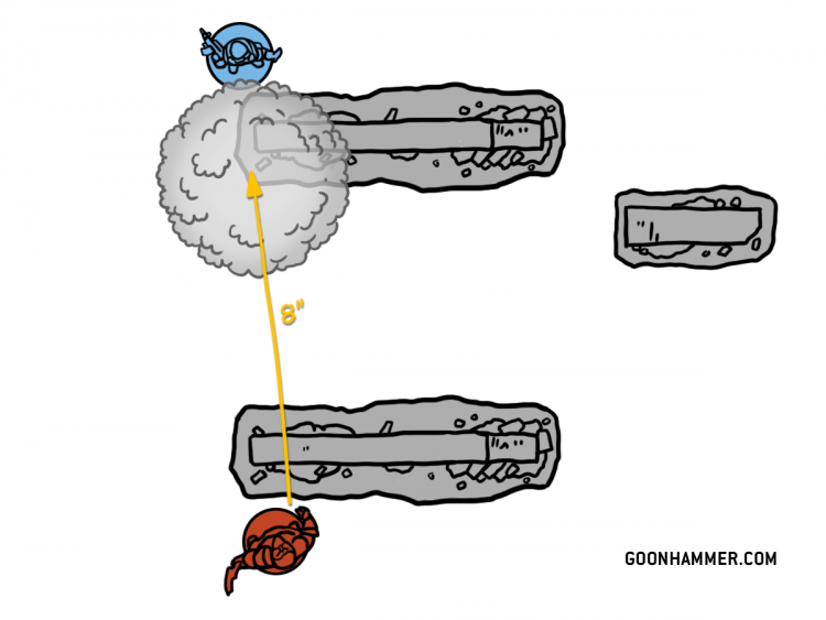 If you have a powerful MSV overwatch piece and are lucky enough to also have smoke in your faction, you can do the suicide smoke toss technique. When an enemy model comes out to engage your MSV piece, an adjacent warband can throw smoke so it lands covering the MSV troop but not the warband itself. This means the rolls are not opposed - the smoke isn't contesting the BS attack - so both models get to roll without it being a face to face roll. This means the smoke tosser is almost certain to die from this.