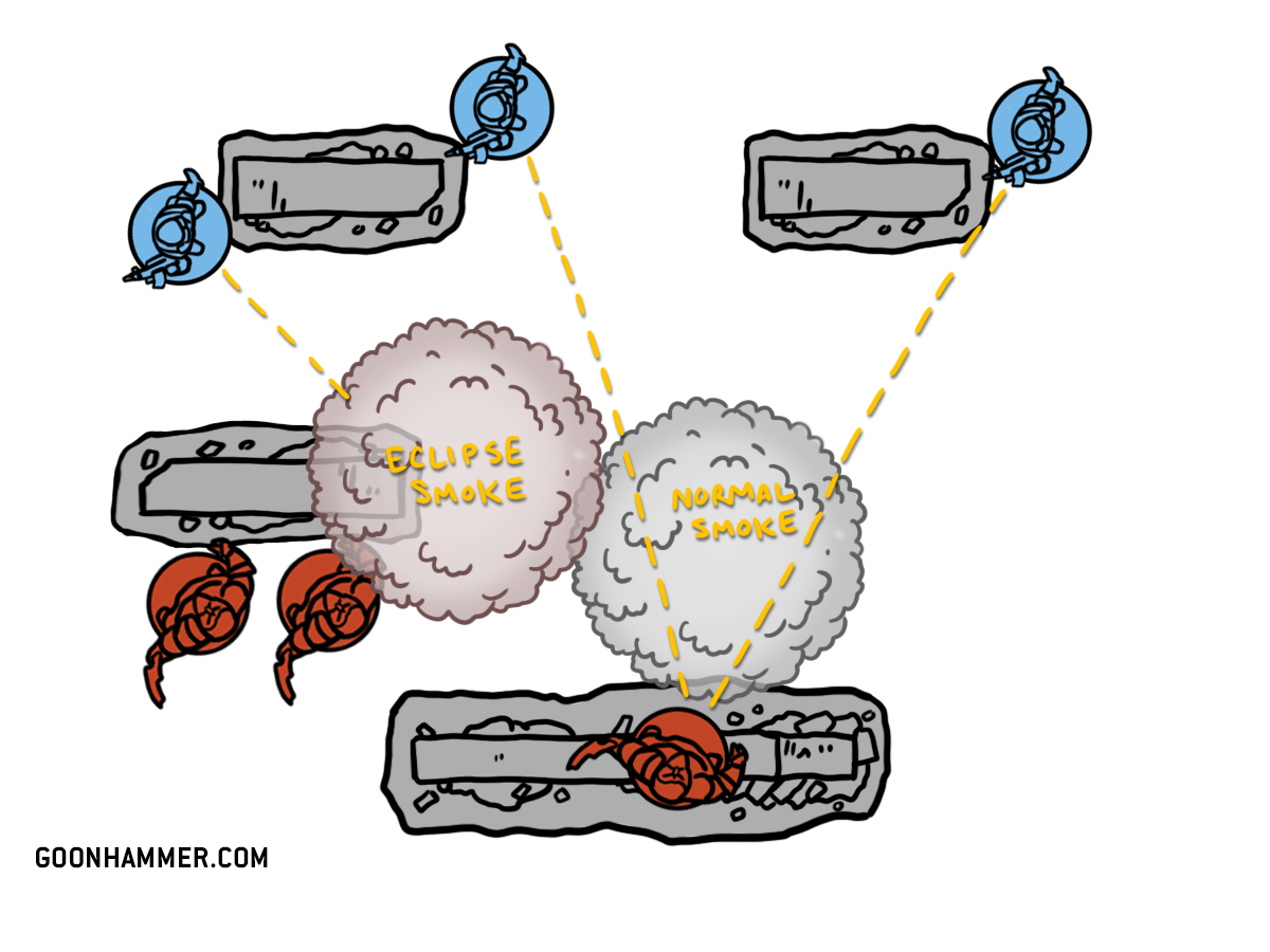 Eclipse Smoke is like regular smoke but cannot be seen through by MSV troops. Oftentimes you'll use it in the same way as normal smoke, but there can come instances where you use it to totally reshape the entire battlefield.