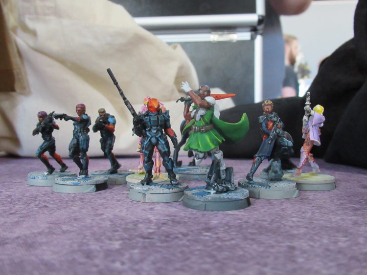 It turns out being a legendary CC25 martial arts 5 grandmaster is nothing compared to a security guard with a taser. The Bluecoat walked into the close combat encounter and turned it into 2-dice CC20 vs 1-dice CC19, and immediately knocked that ninja on her butt. Hector then exploded the other one, exploded half the link team that was unadvisedly within template range of each other, and then exploded Musashi in a devastating example of the power of core-linked plasma.